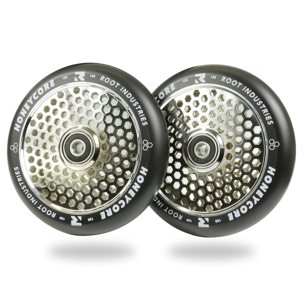 In 2017, Root Industries shocked the scooter scene with the Honeycore wheel. While other brands scrambled to play catch up to the hugely popular AIR wheels, Root Industries were testing how far they could push hollow-core technology. With advanced manufacturing processes and a little bit of trial and error, Root Industries managed to find a peculiar honeycomb cutout pattern that would save weight, look great, and perform even better. Once again, Root Industries had found innovation where others saw none. Seemingly accomplishing the impossible, the Honeycore wheel managed to take the throne as the world’s lightest scooter wheel.