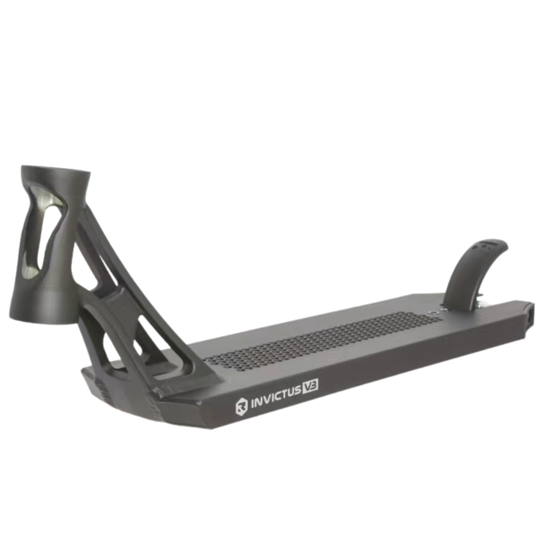 The all new Invictus v3 deck is the result of years of development to find the lightest, strongest scooter deck. Perfectly balanced, built with our unique magnesium-rich 6061 aluminium and triple heat-treated for ultimate strength, the large cavity extrusion gives added support to the Invictus signature honeycore cutout.